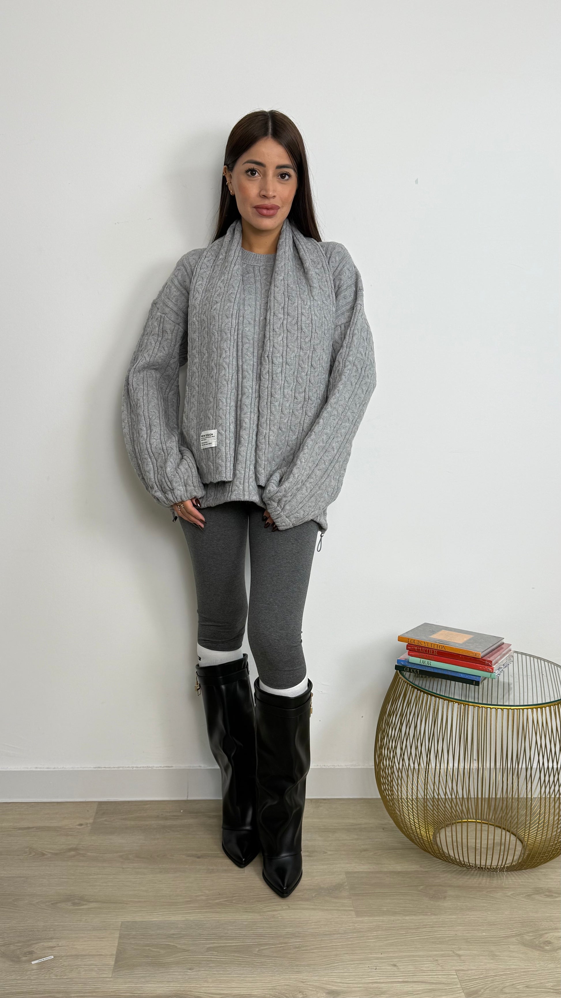 MAGLIONE INTRECCIATO CON SCIARPETTA